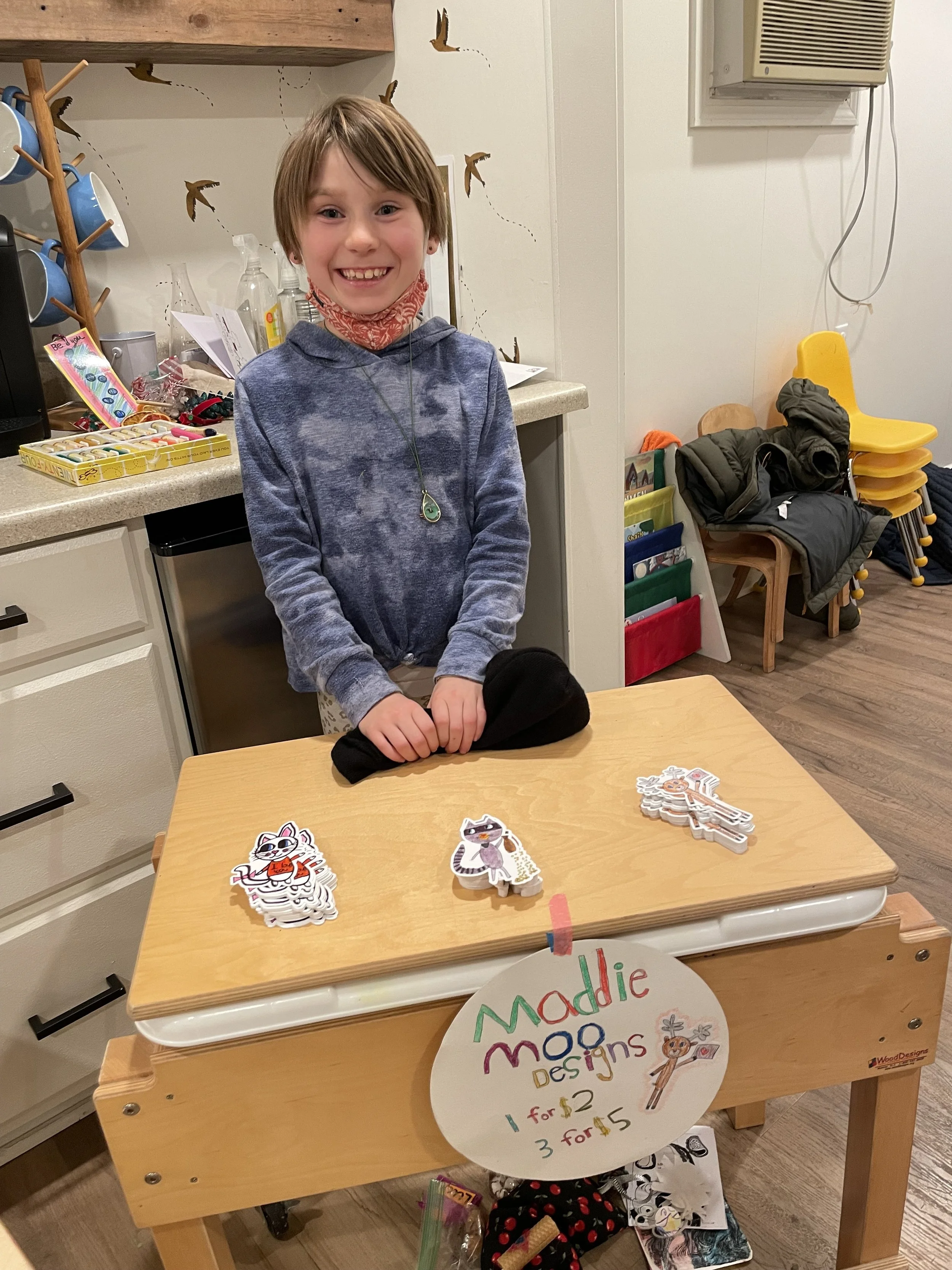 In addition to donating a portion of her sales, we’re taking it a step further to help businesses who want to give back to support charitable causes of their choice. Maddie can take your business logo, picture, or idea and create one-of-a-kind, custom stickers. You can then sell your stickers and direct a share of the proceeds to a charity of your choice.